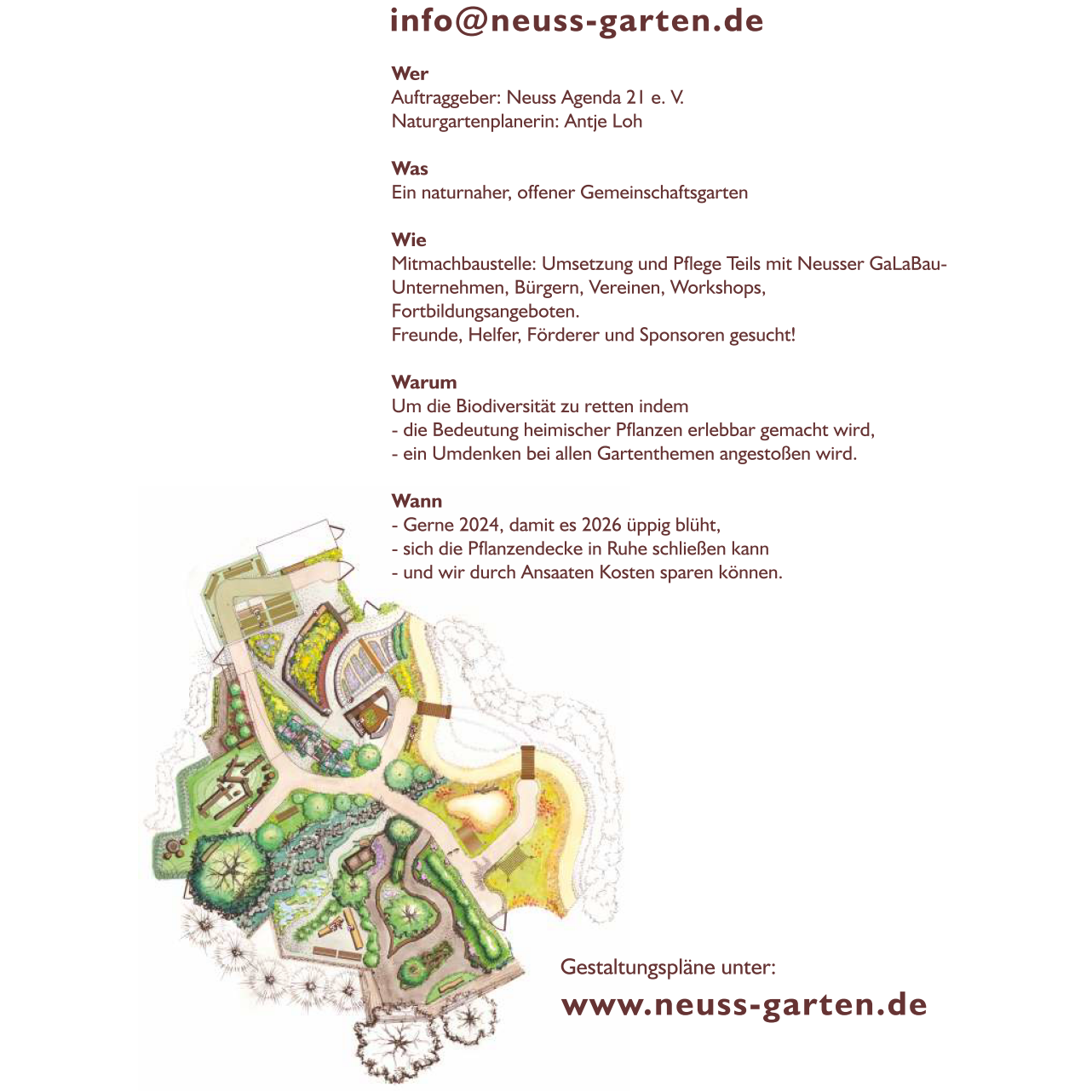 Planung, Projektleitung Antje Loh: info@neuss-garten.de